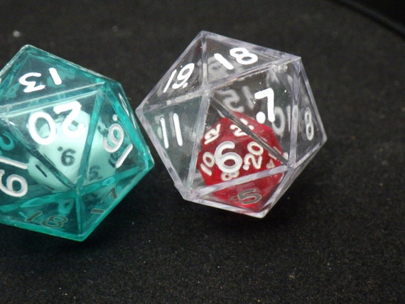 Double D20 Small Twenty Sided Die In Larger Transparent Etsy